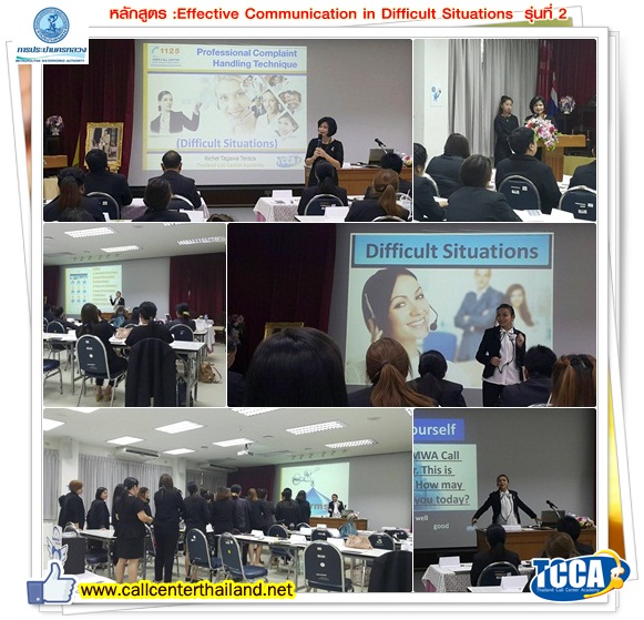 Thailand Call Center Academy (TCCA) ได้รับเกียรติและความไว้วางใจจาก การประปานครหลวง (MWA 1125) อบรมหลักสูตร Professional Complaint Handling with Difficult Situations Technique เน้นการบริการที่เป็นเลิศแก่ลูกค้าที่ร้องเรียน และการรับมือกับปัญหาในสภาวการณ์ที่ยุ่งยากอย่างถูกต้อง พร้อมปรับทัศนคติให้ดีขึ้น รุ่นที่ 2 ปีที่ 5 เมื่อวันอังคารที่ 9 พฤษภาคม 2560 โดยมี อ.Richel : วิทยากรคุณภาพด้าน Call Center ถ่ายทอดเทคนิคขั้นตอนการบริการ การรับฟัง การจับประเด็น การพูดจา วิธีการปฎิบัติในการสื่อสาร